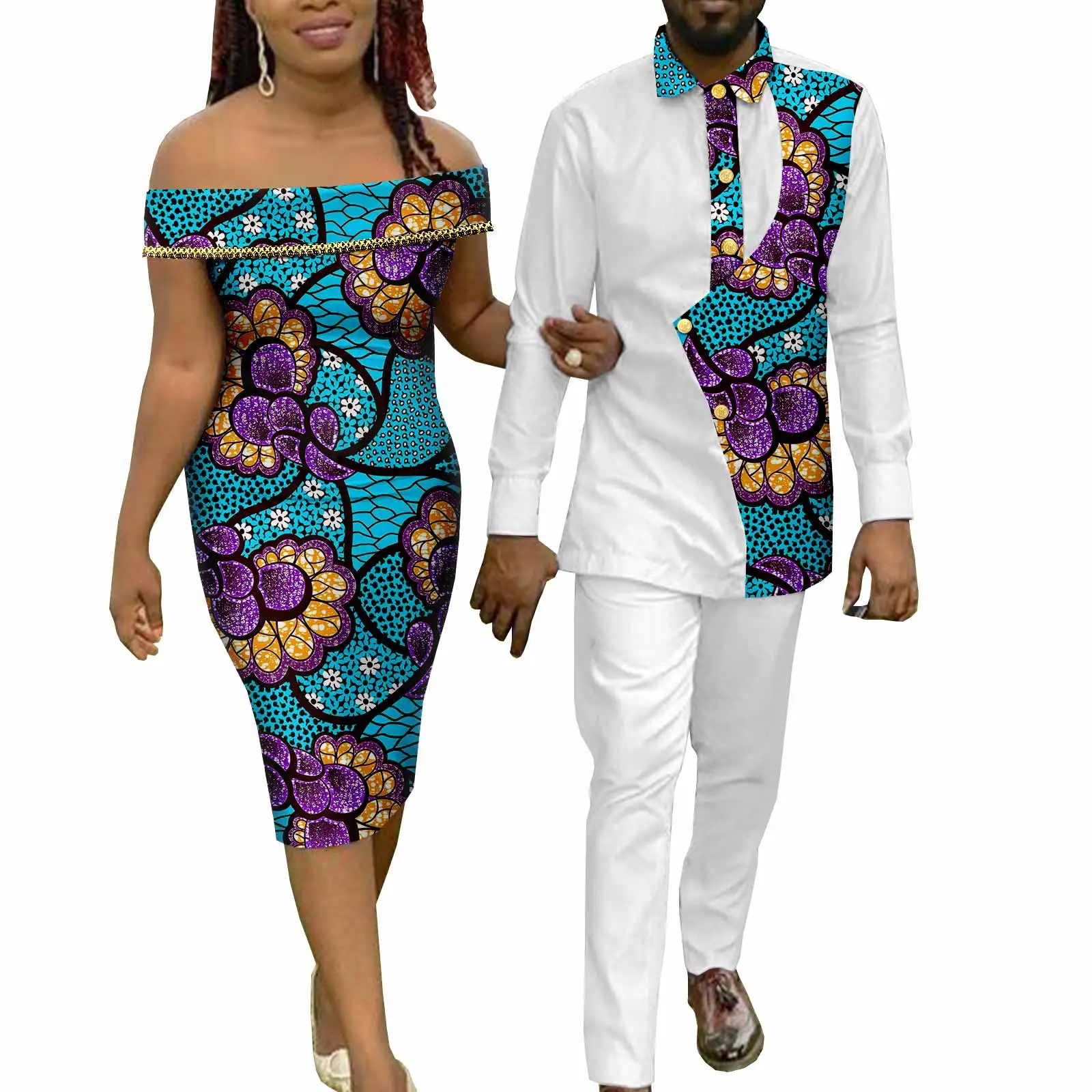 DESCRIPTION :Dashiki African Men Irregular Outfits Irregular Top Shirts and Pants Sets Matching Women Print Dresses Couples Clothes Y22C047